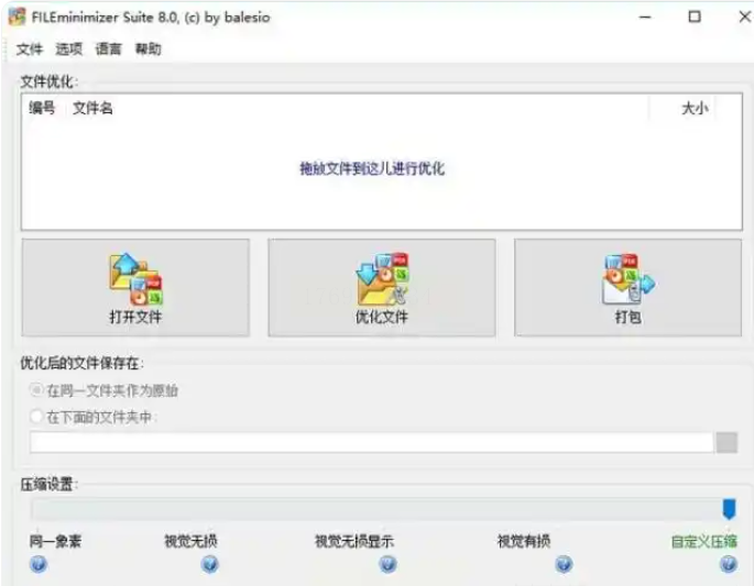 在电脑上找到FILEminimizer的安装包,双击安装。安装时注意别选成其他工具,一路点"下一步"就行。装完启动软件,主界面简洁,能看到"Add Files"(添加文件)和"Compress"(压缩)这些选项,很直观。