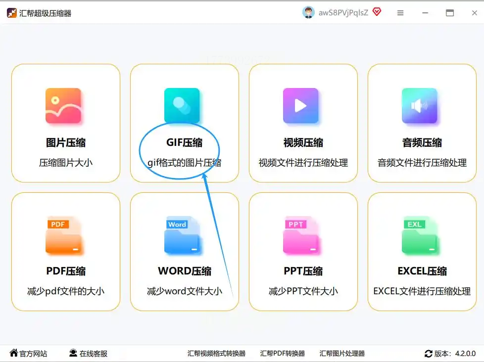 2. 选择GIF压缩功能:打开软件后,在主界面找到"GIF压缩"模块(通常在"图像处理"分类下),点击进入。