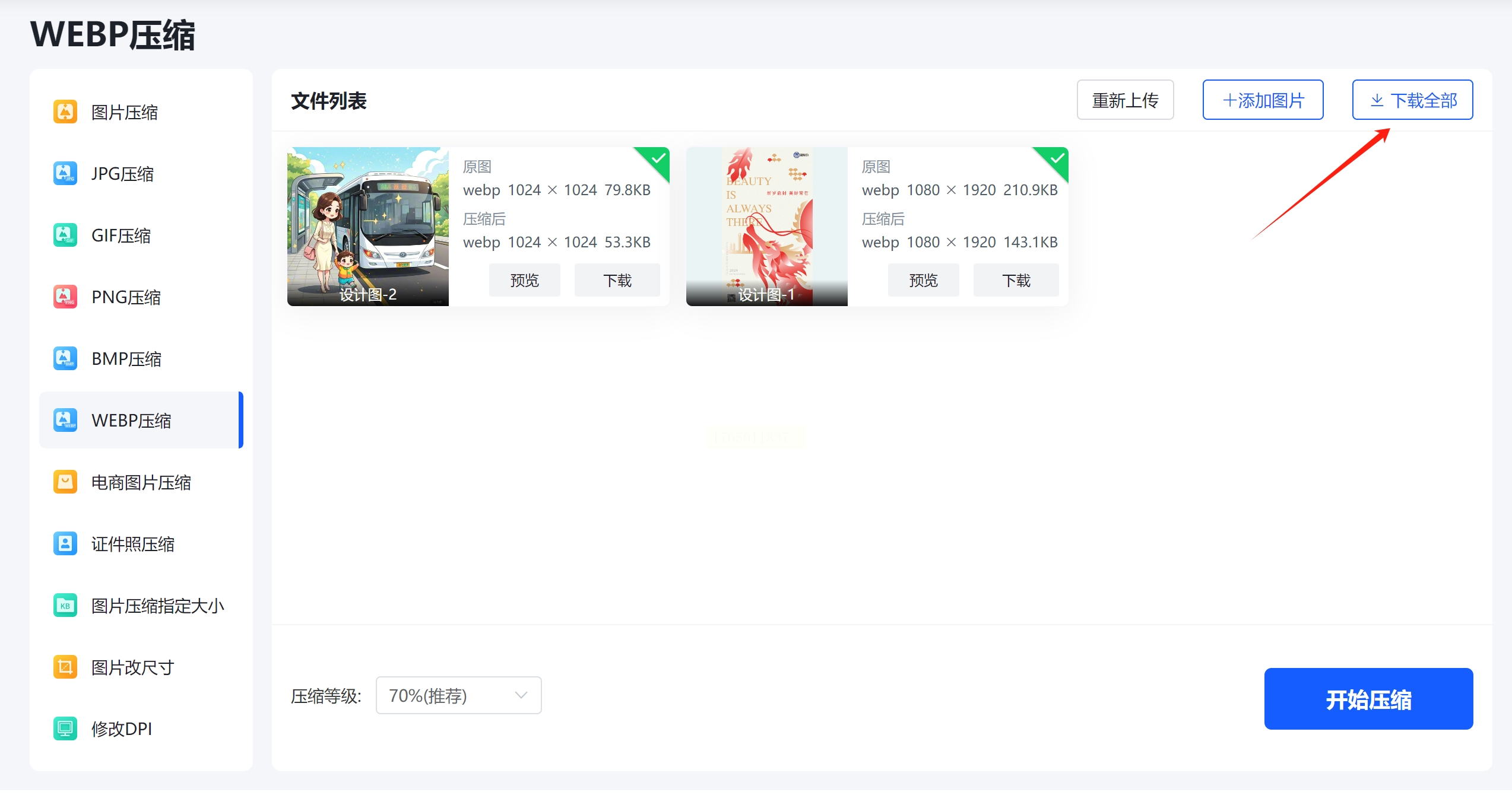 确认好上面几步后,大胆地点击那个醒目的【开始压缩】按钮吧。