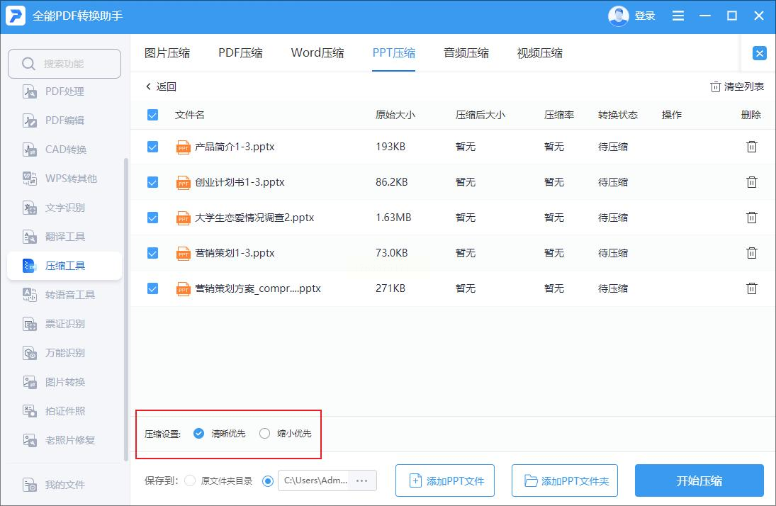 这款软件除了PDF转换,还集成了文件压缩功能,包括PPT压缩。