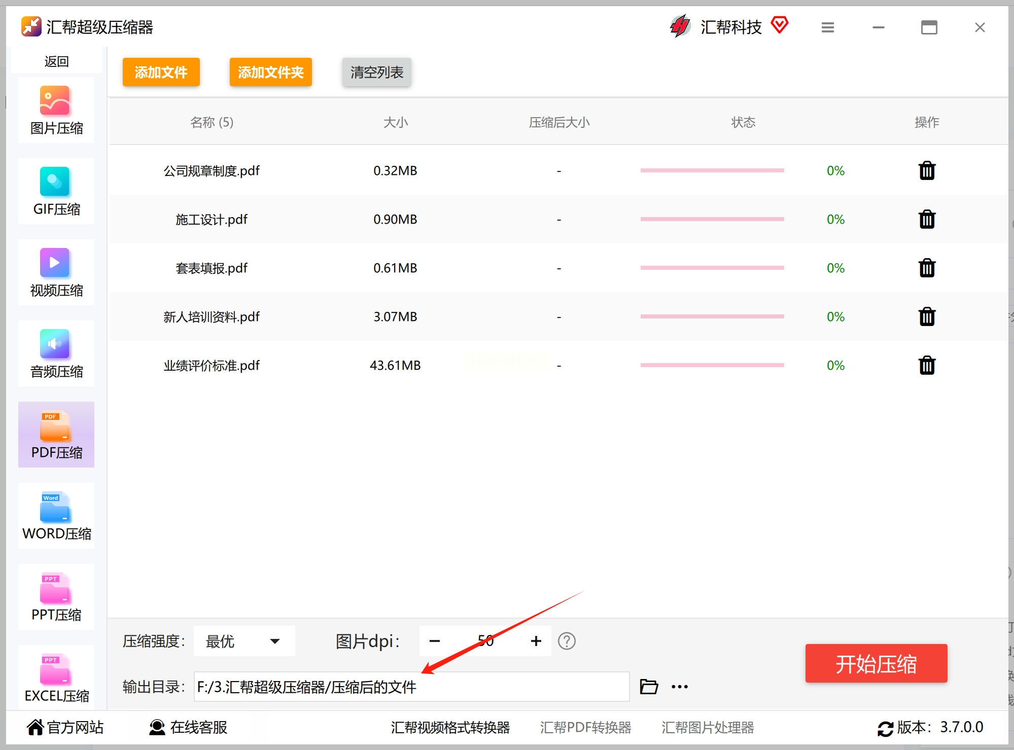 为避免压缩后的文件与原始文档混淆,建议提前指定输出文件夹。点击“输出目录”或“保存到”选项,选择或新建一个用于存放处理后文件的目录。