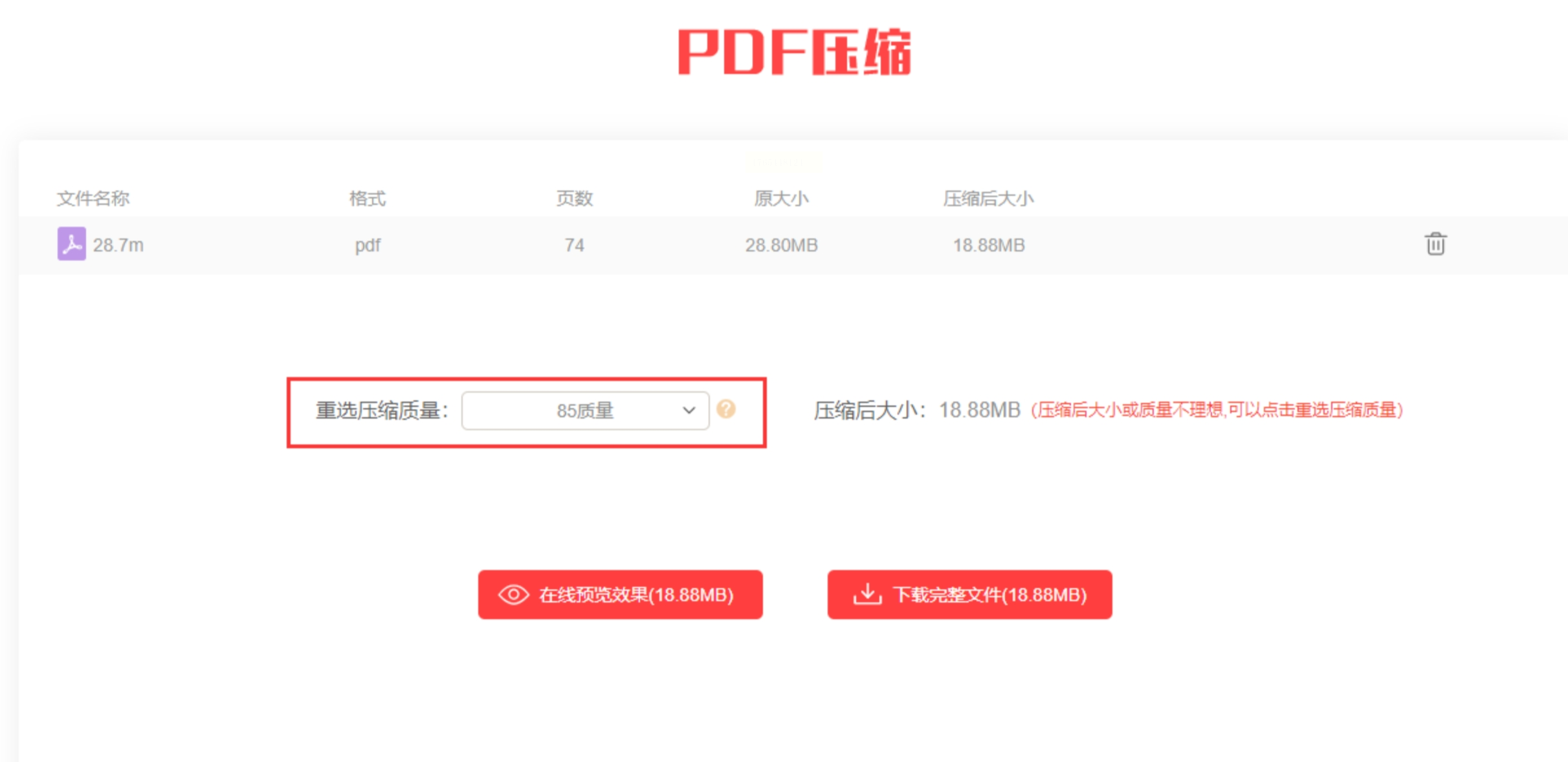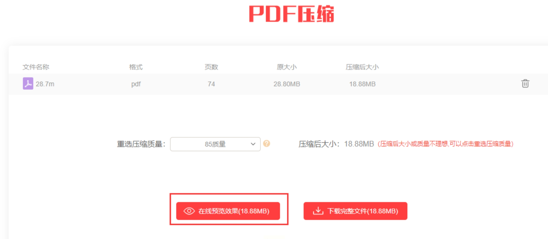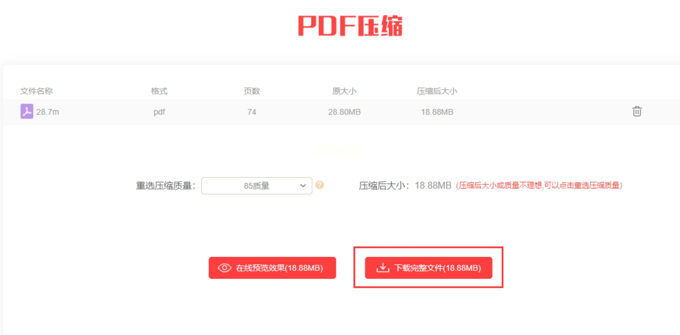 压缩完成后,您可以直接在线预览结果,检查内容是否清晰、有无错乱。如果对效果不满意,可以调整参数重新压缩;如果满意,则点击“下载”按钮将压缩后的PDF保存到本地设备中。