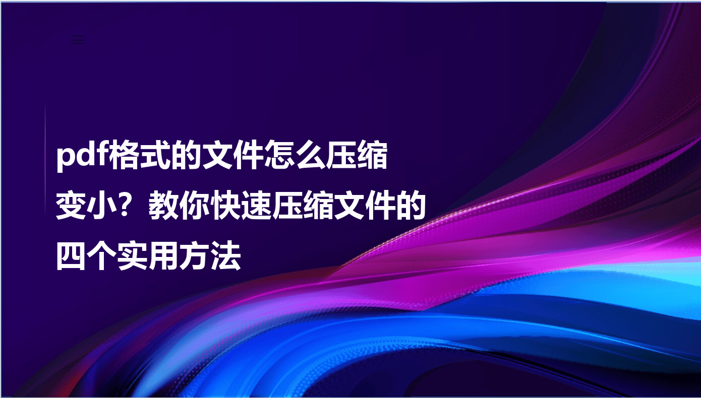 pdf格式的文件怎么压缩变小?教你快速压缩文件的四个实用方法