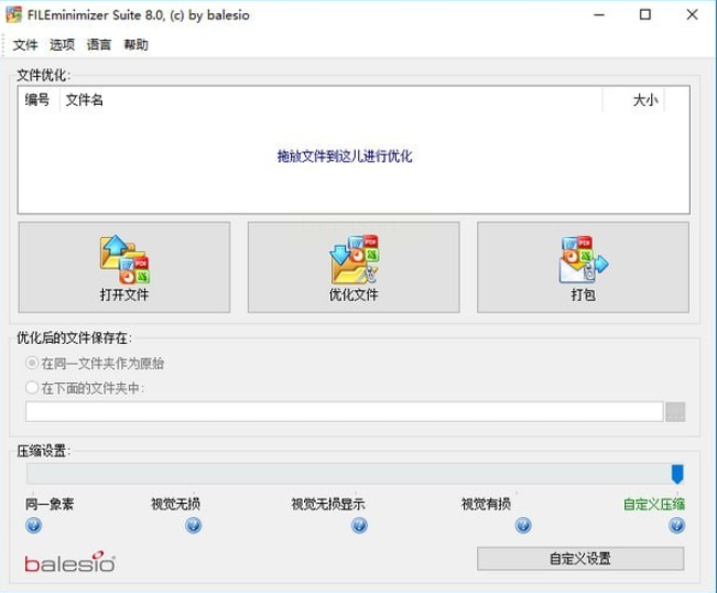 步骤三:添加文件后,软件可能会自动开始分析并显示预估的压缩比例。你有时可以点击“选项”或设置按钮,来调整压缩的强度级别。