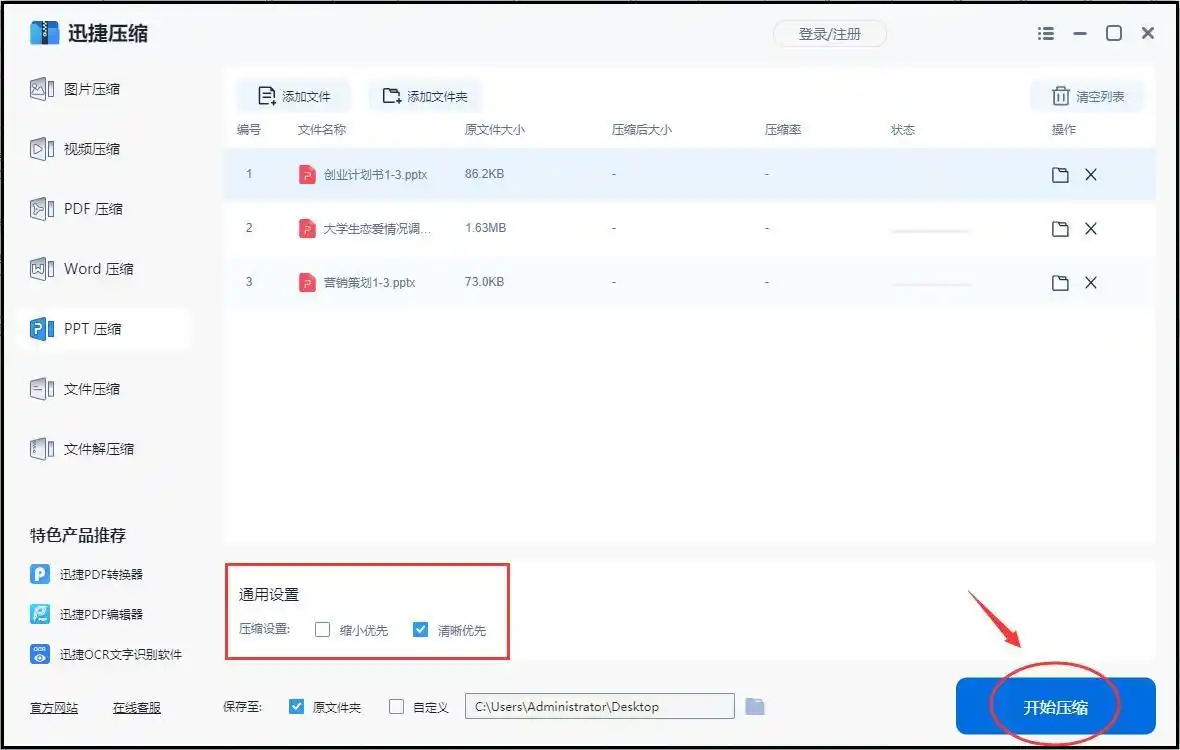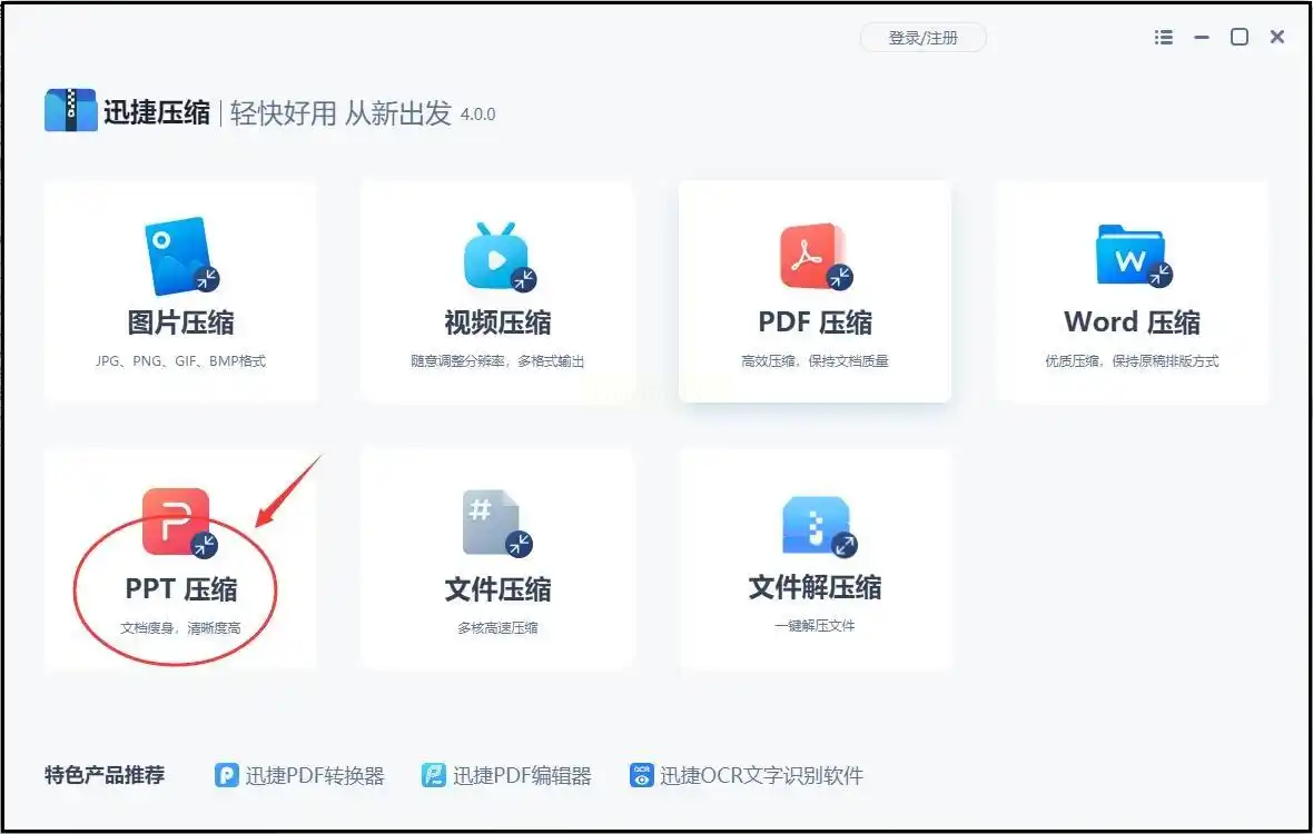 迅捷压缩工具以"全能型"著称,除PPT外还支持文档、视频、图片等多种格式处理,适合需要高频处理多类型文件的用户。