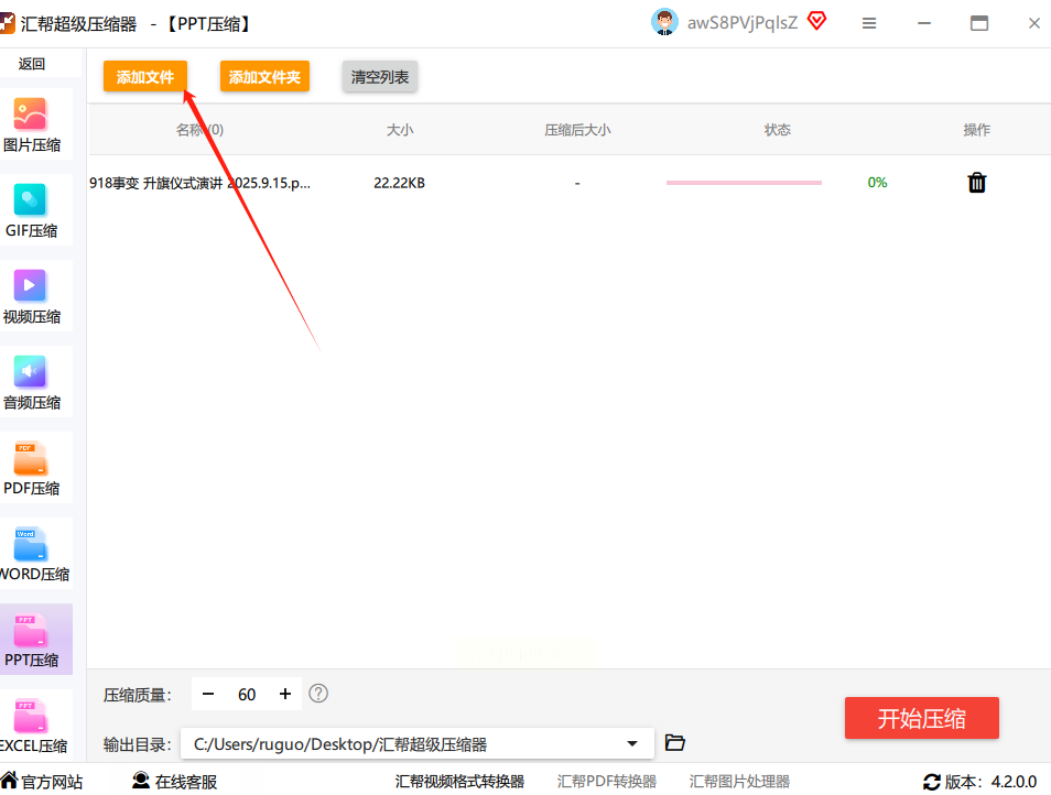 点击“添加文件”按钮,可导入单个PPT文件;若需批量处理,可选择“添加文件夹”功能,一次性处理多个PPT。