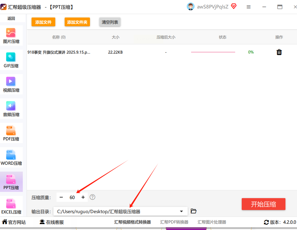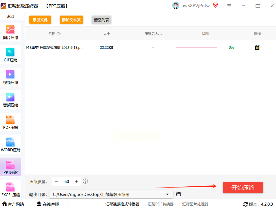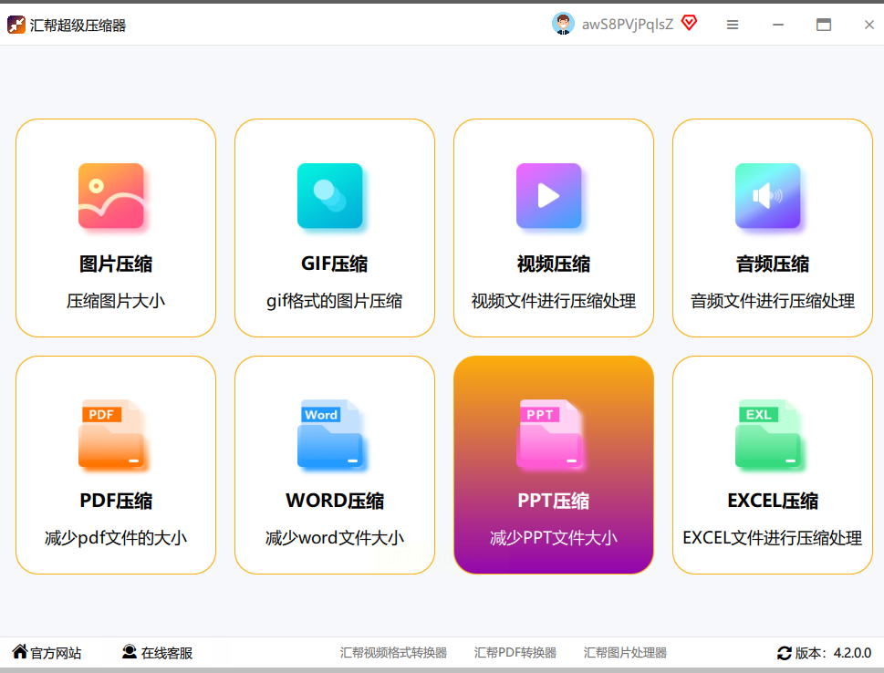 打开汇帮超级压缩器后,在主界面找到“PPT压缩”模块。