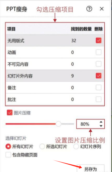 - 清理缓存和临时文件:部分PPT中可能包含自动保存的临时数据,勾选后可彻底清除。