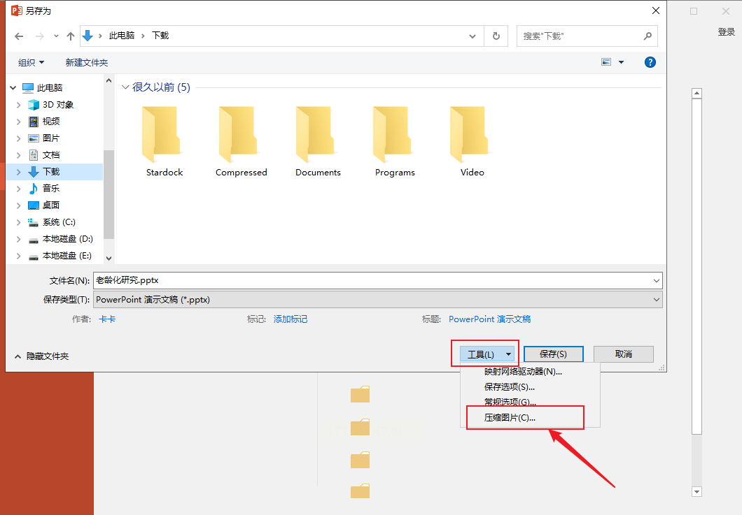 1. 打开PPT文件,点击左上角“文件”→“另存为”,选择存储位置后点击“工具”按钮。
