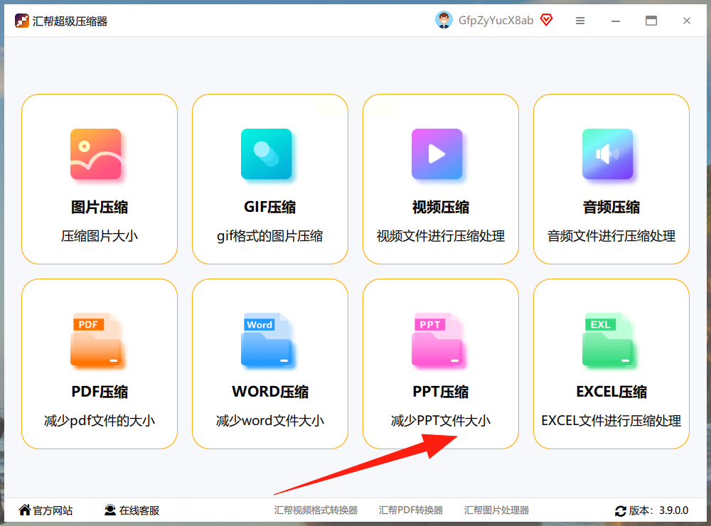 汇帮超级压缩器是一款专门针对PPT文件优化的工具,能高效减少ppt内存,操作步骤如下: