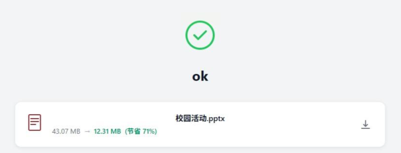 4. 压缩完成后,页面会刷新,出现一个“Download”下载按钮。点击它,就能把瘦身成功的PPT保存到本地了。