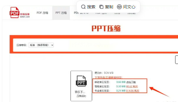 访问99PDF网站,找到“PPT压缩”功能。进入后,你会看到几种预设的压缩模式:
