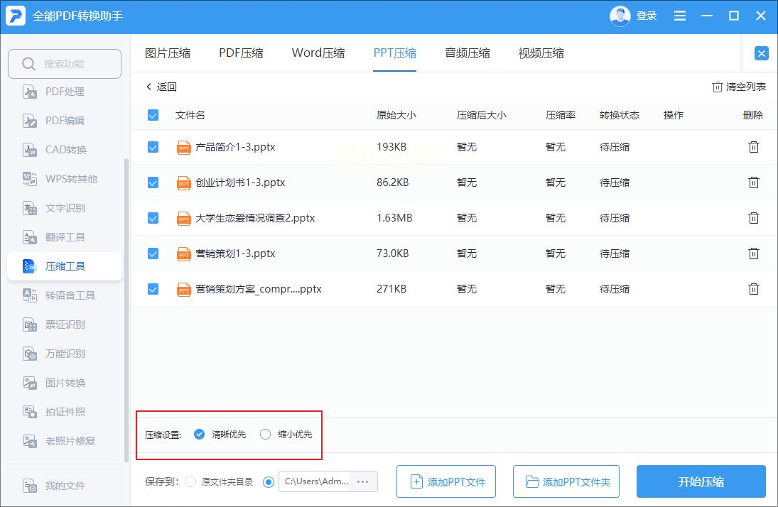注意:该软件主要面向PDF转换,PPT压缩功能比较基础,压缩效果不专业。