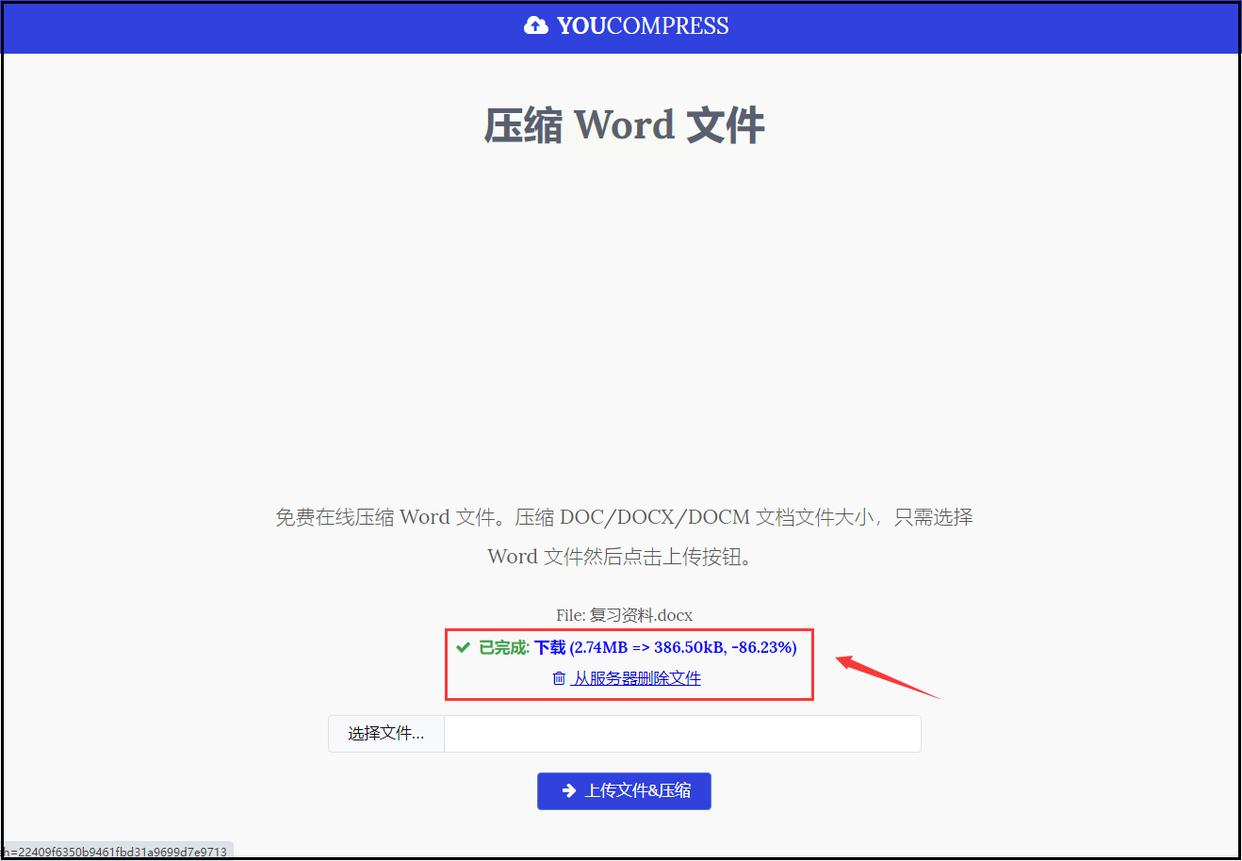 YOUCOMPRESS是另一个简单易用的在线压缩网站,专门处理各种格式的文件,包括Word文档。