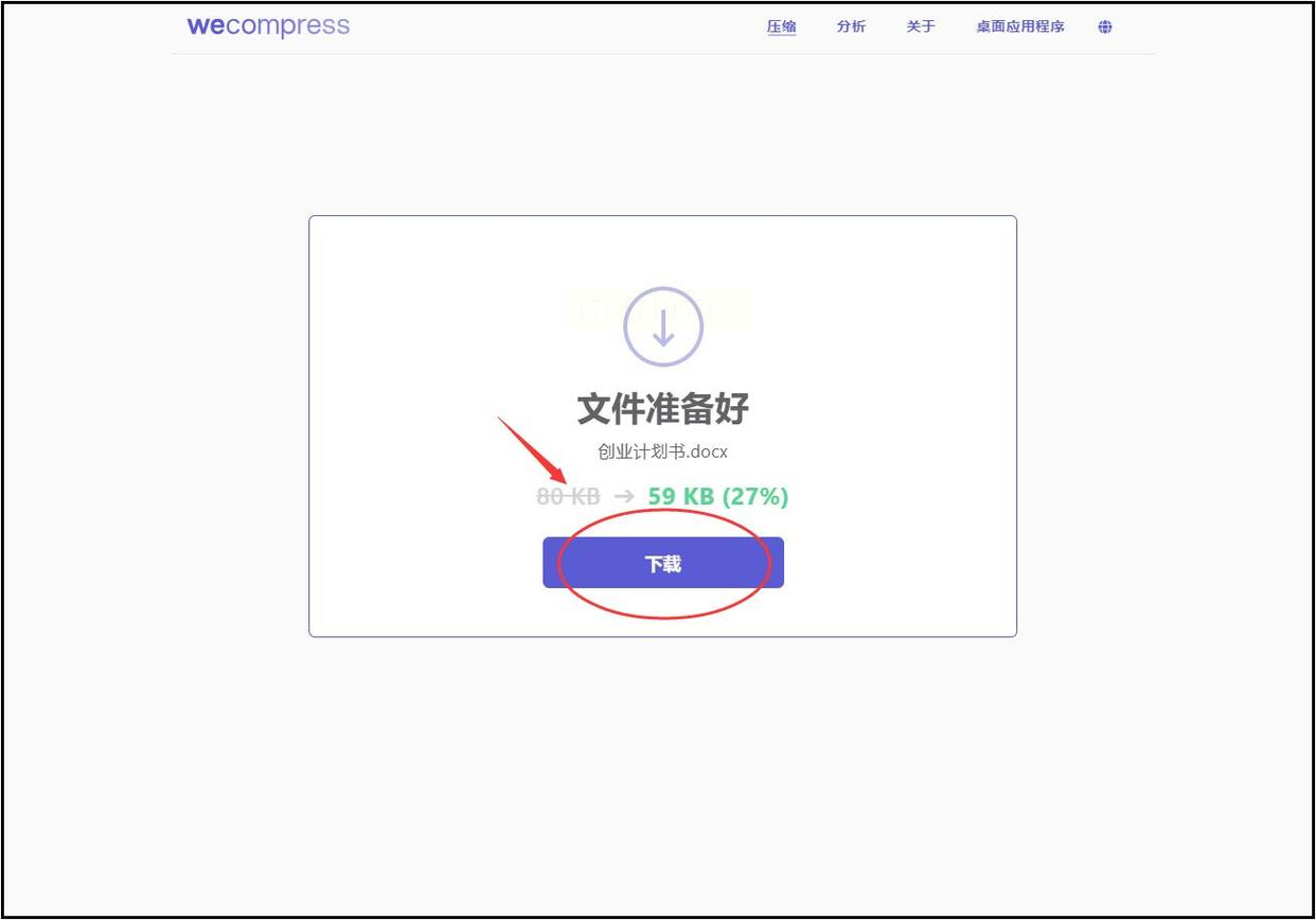 3. 文件上传后,点击压缩按钮,网站就会开始处理。处理完成后,直接下载最终的文件就行了。