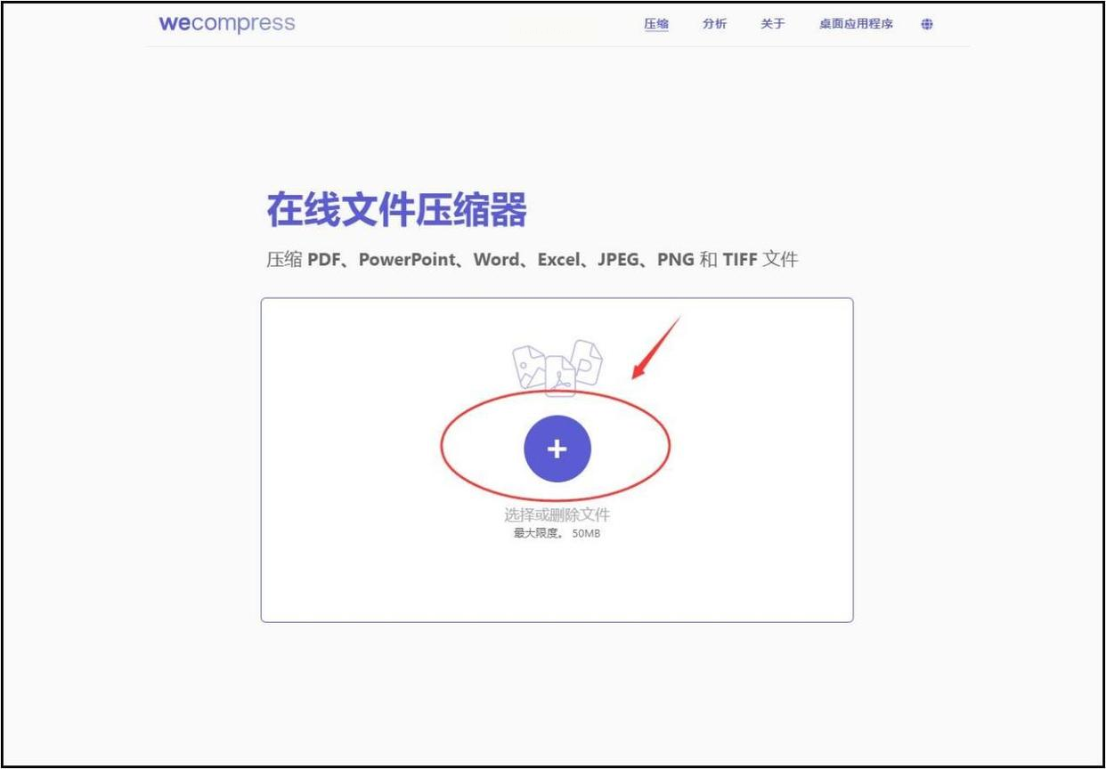 2. 在网页上找到并点击“+”号按钮,从你的电脑里选择那个需要“瘦身”的Word文档。