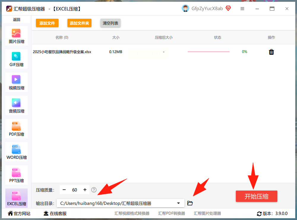 汇帮超级压缩器是一款专注Excel文件优化的专业工具,无需复杂配置即可快速实现文件瘦身。以下是具体操作步骤: