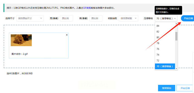 设置完后点“开始压缩”,等网页加载进度条走完。