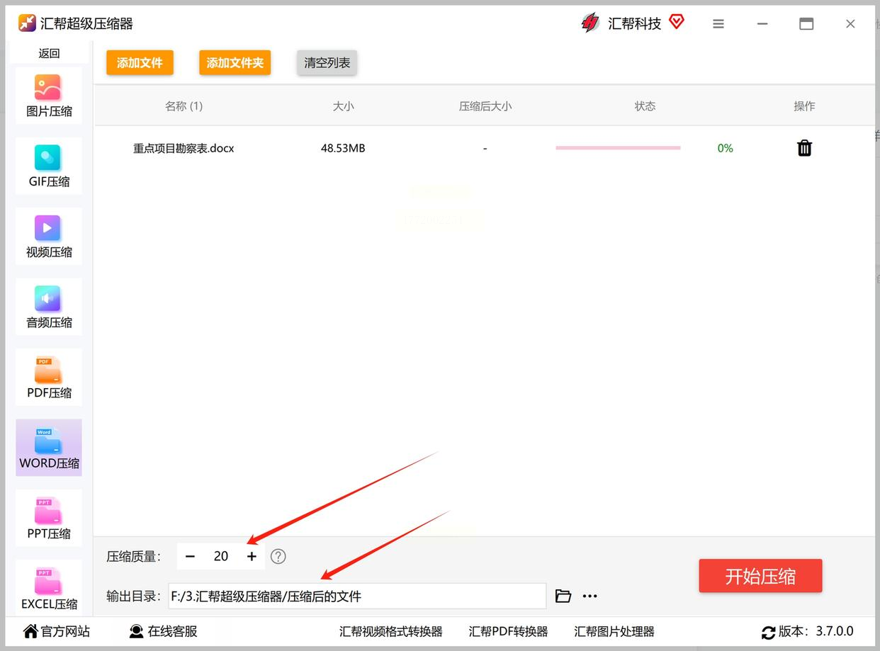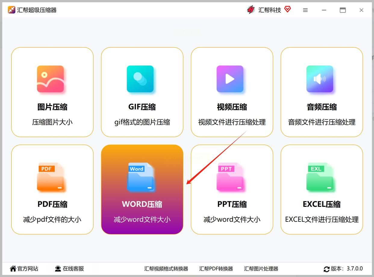 1. 安装与打开:先去官网下载汇帮超级压缩器(免费版足够用),安装时别装太多捆绑软件,按提示一路下一步就行。打开软件后,主界面就能看到"WORD压缩"选项卡,这就是咱们要的神器入口。