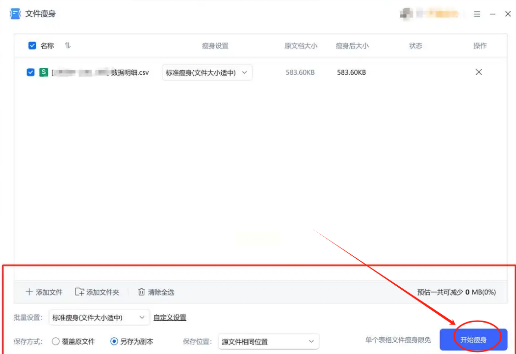 4. 设置好之后,点击“开始瘦身”或“立即瘦身”。WPS会在后台处理,速度很快。