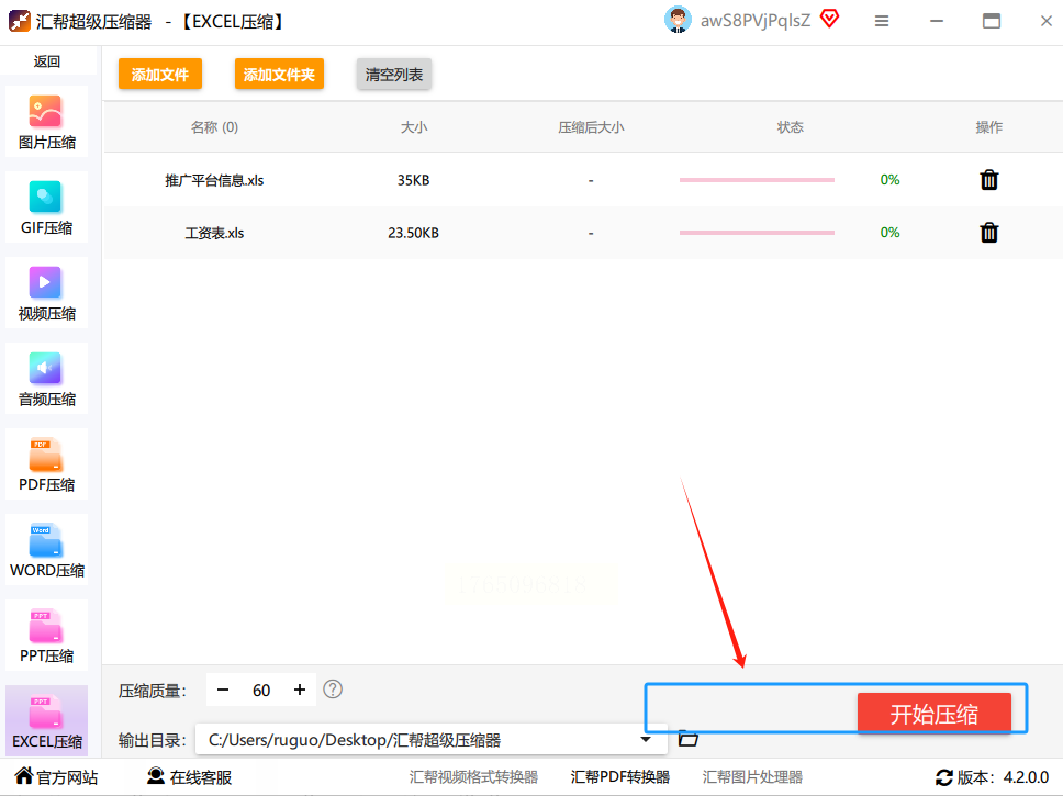 1. 打开软件,主界面一目了然。你会看到“PDF压缩”、“Word压缩”、“PPT压缩”等好几个选项。没错,咱们要处理Excel,就直接点击那个“Excel压缩”的按钮。