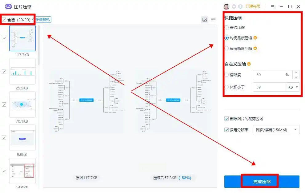 - 若需要更高压缩率,可勾选"仅压缩所选图片"并单独设置。