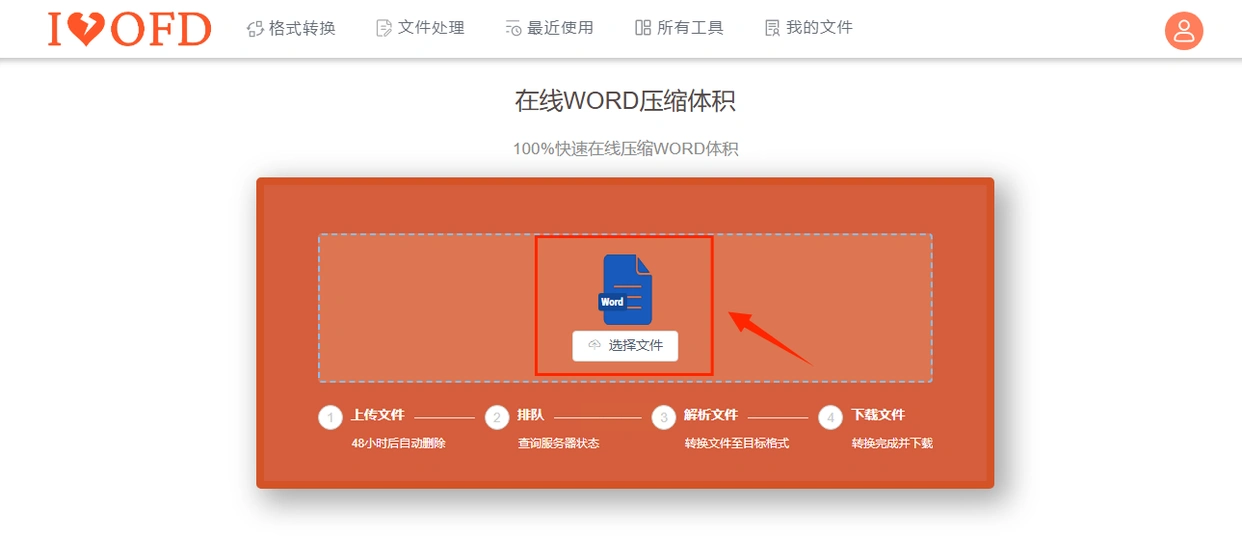 1. 上传文档:打开iLoveOFD官网,点击"选择文件"按钮,从本地选择Word文档上传,系统会自动解析文件内容。