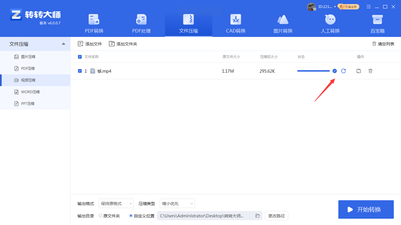 4. 压缩执行:点击“开始压缩”按钮,软件会自动在后台处理,进度条显示实时压缩状态,完成后可直接在目标路径查看压缩结果。