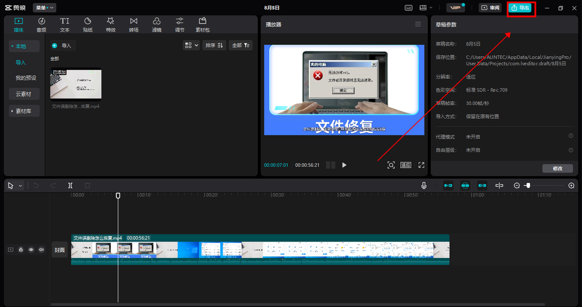 1. 项目创建:打开剪映专业版,点击“新建项目”导入需压缩的视频。