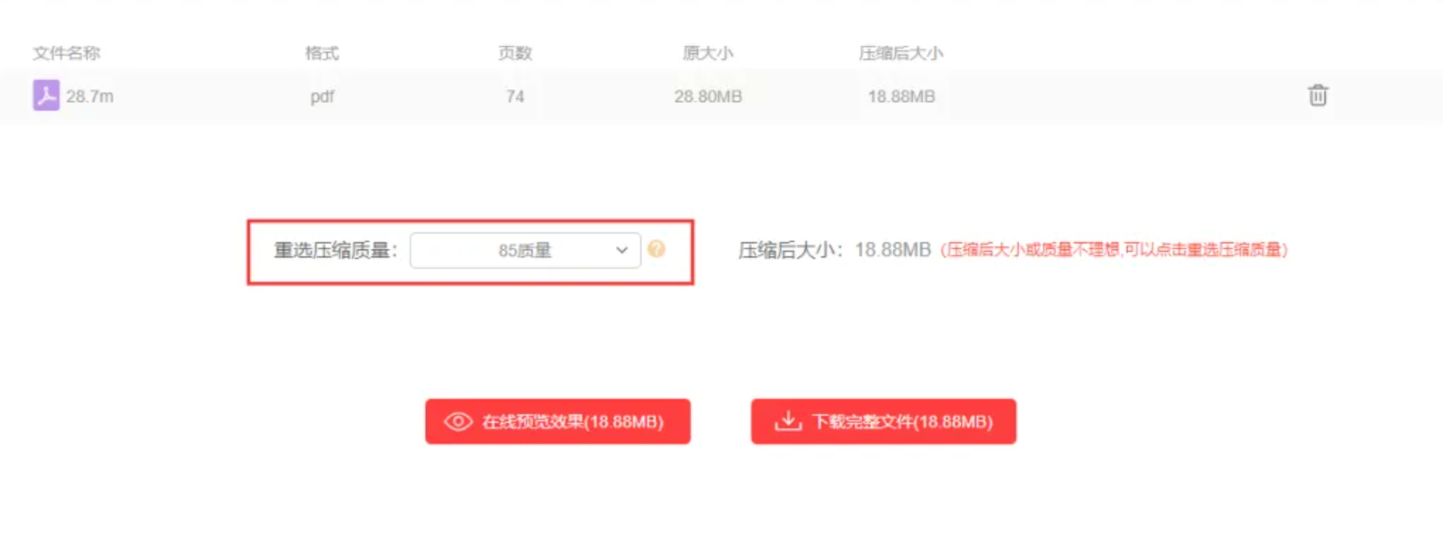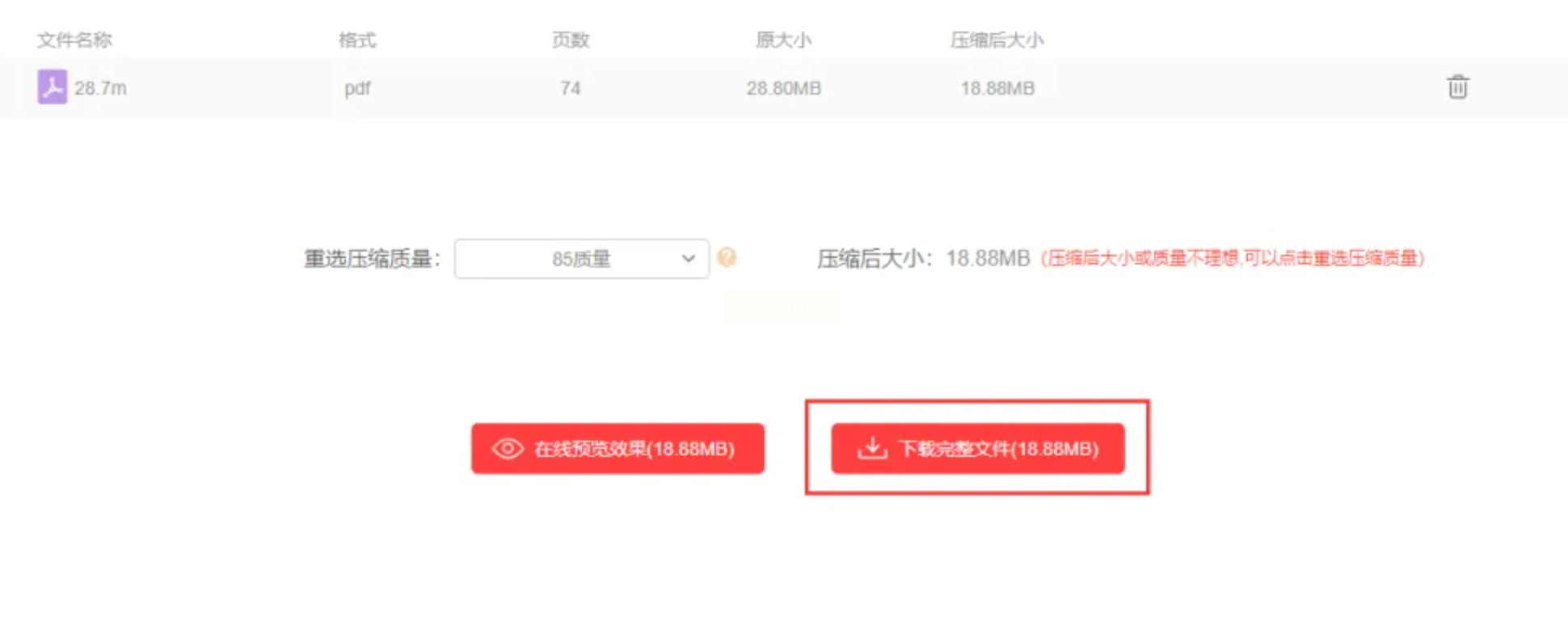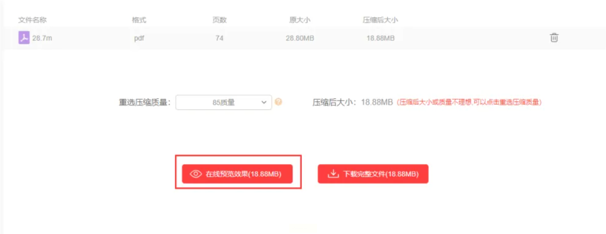 步骤四: 处理完成后,强烈建议先点击“预览”功能,检查压缩后的文字是否清晰、图片有无模糊。确认无误后,再下载到本地。