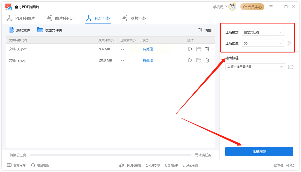 步骤六: 点击“开始压缩”或“转换”按钮,等待处理完成。
