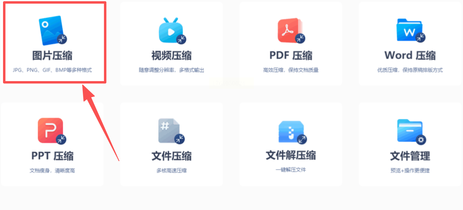 步骤一:运行软件后进入主操作面板,选择图片压缩功能单元。