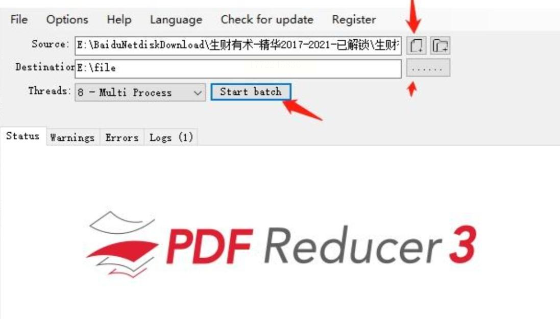 3. 设置输出路径:然后回到主界面,选“Source”导入要压缩的PDF,“Destination”选存放位置,比如新建个文件夹叫“压缩后”。