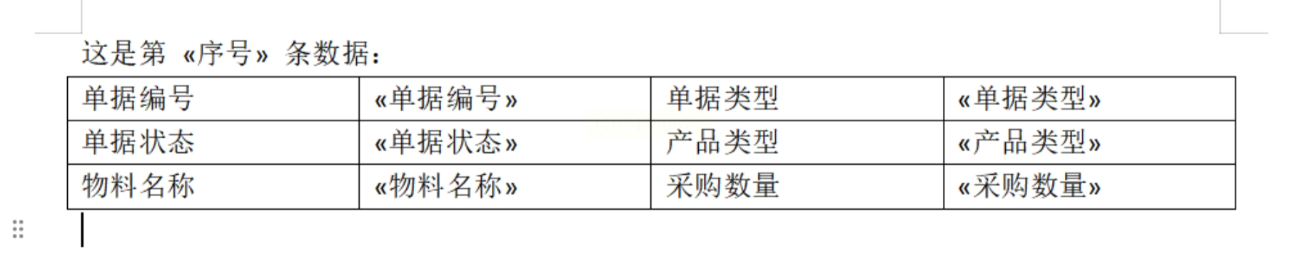 4. 重复这个操作。把光标移到“销售额”下面的格子,点击“插入合并域”,选择“销售额”……直到把你表格里所有需要填数据的地方都插好对应的占位符。
