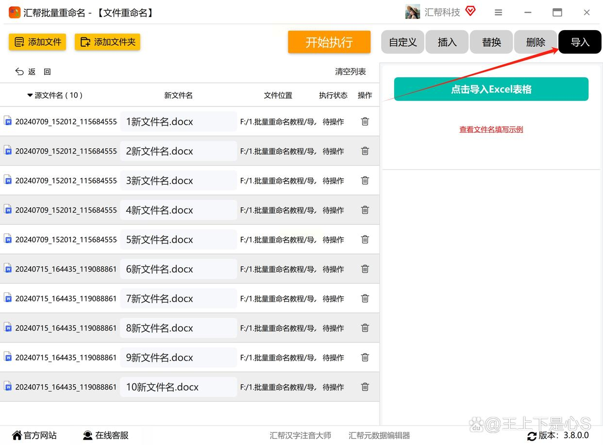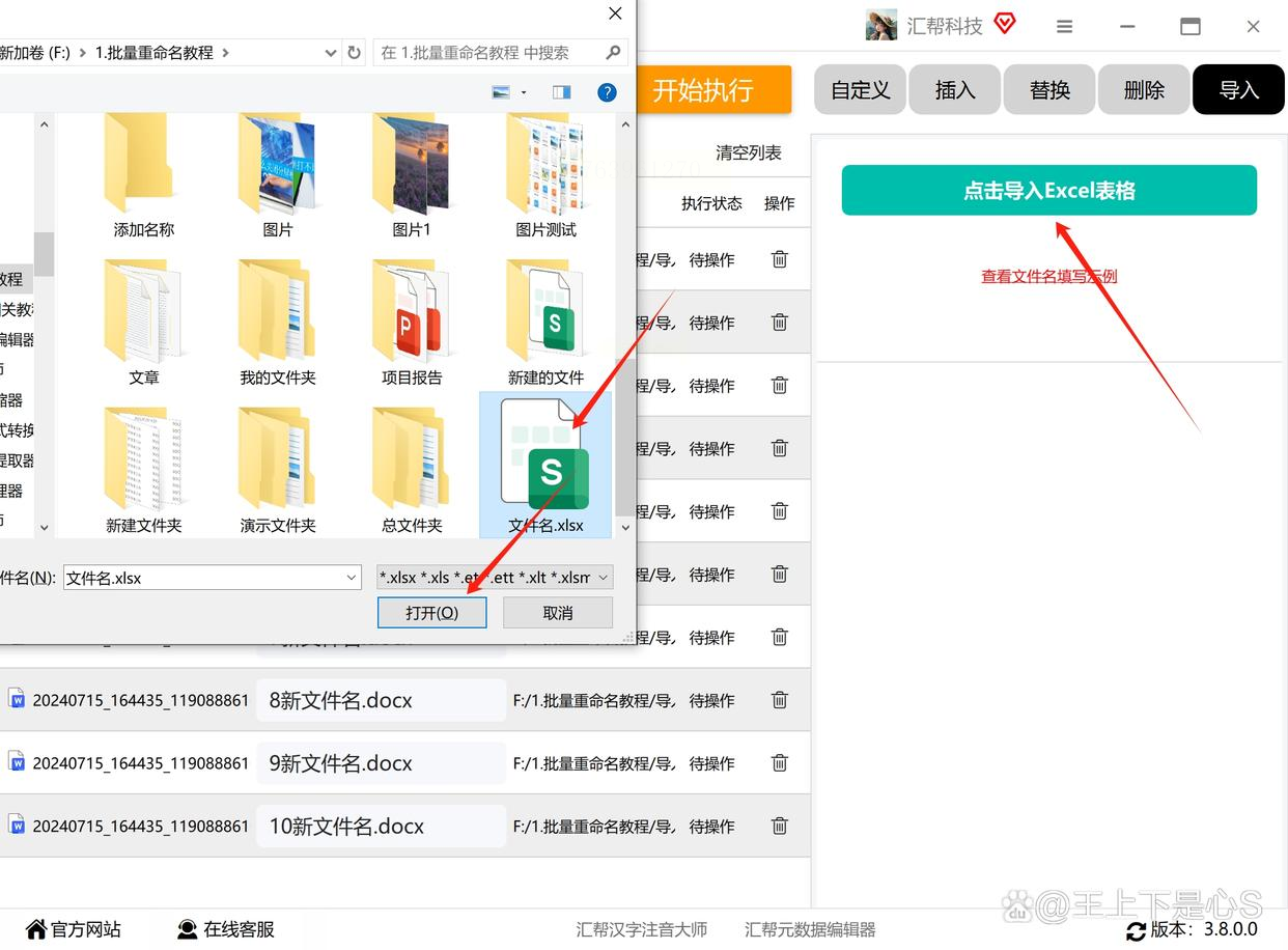 四、汇帮批量重命名:Excel数据一键联动改名(终极懒人版)