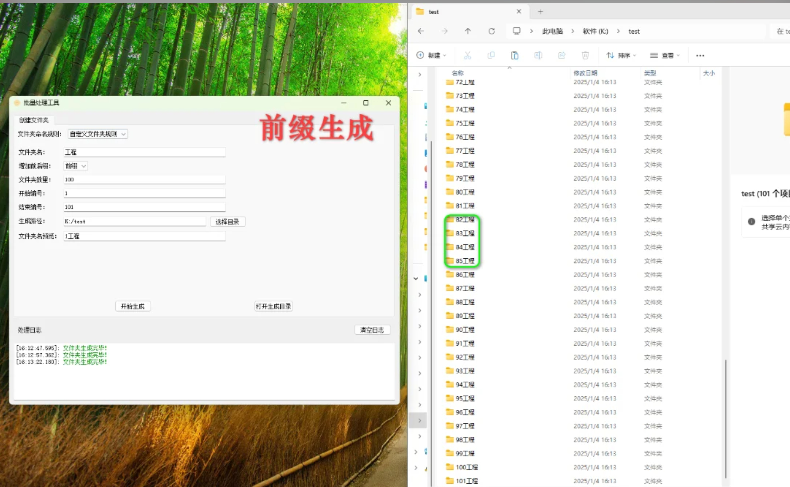 4. 一键生成:点击“开始生成”,工具会自动按规则创建文件夹,完成后会有提示音或弹窗通知。