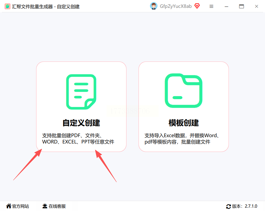 步骤一:打开汇帮文件批量生成器后,直接点击主界面的“自定义创建”按钮。