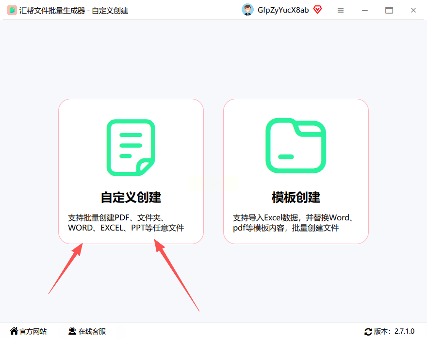 打开软件后,在主界面找到“自定义创建文件”选项并点击。这一模式支持灵活设置文件类型、数量、命名规则等参数,适合需要精确控制输出结果的场景。