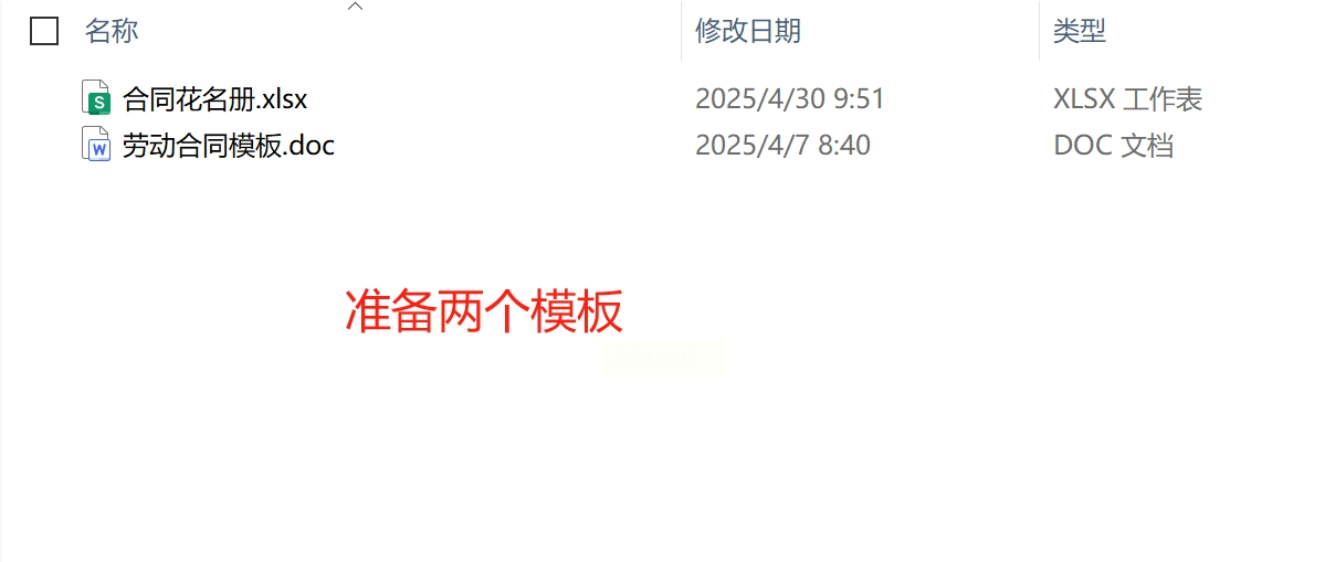 * Word模板文件:和上面方法一样,设计好文档,在需要填写的地方用 `{字段名}` 的格式做好标记(比如 `{姓名}`、`{公司}`)。