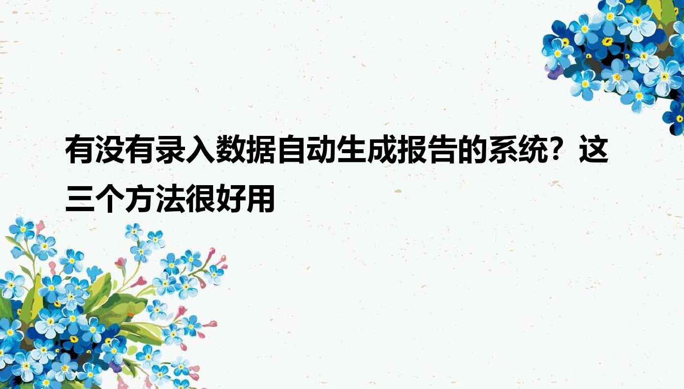 有没有录入数据自动生成报告的系统?这三个方法很好用