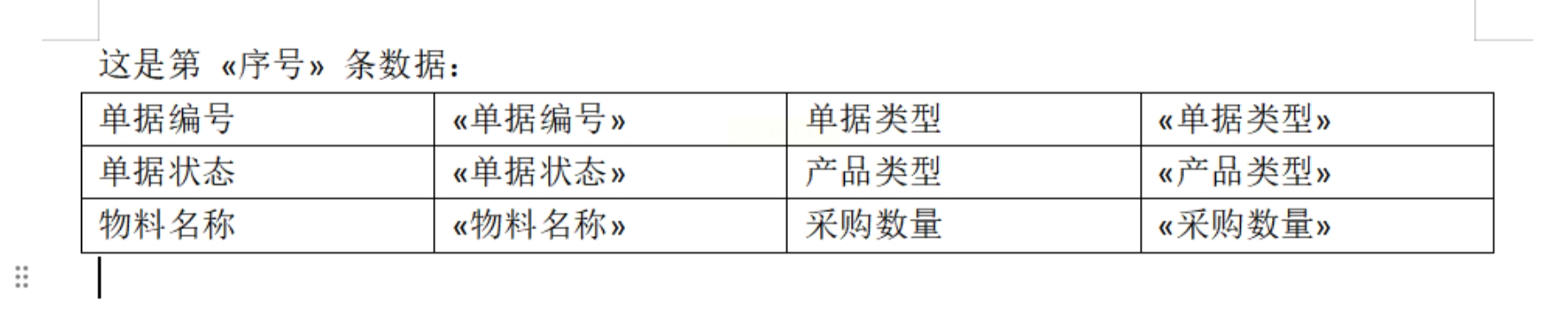2. 在word模板中,需要填写的地方用大括号包裹字段名