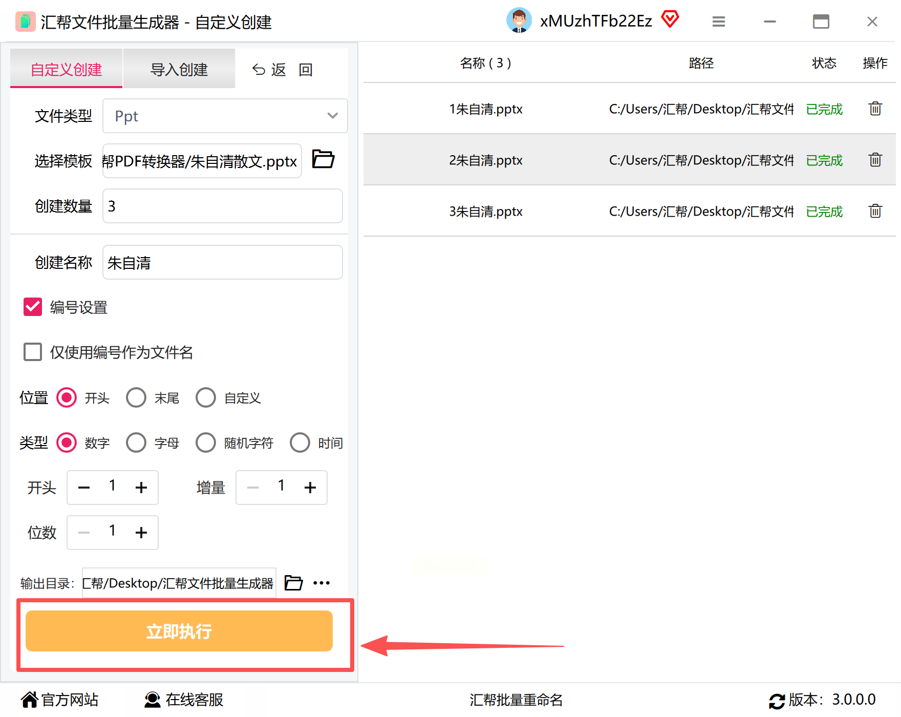 确认所有参数无误后,点击“立即执行”按钮。软件将开始处理任务,您可以通过界面右侧的进度显示区域实时监控执行状态。