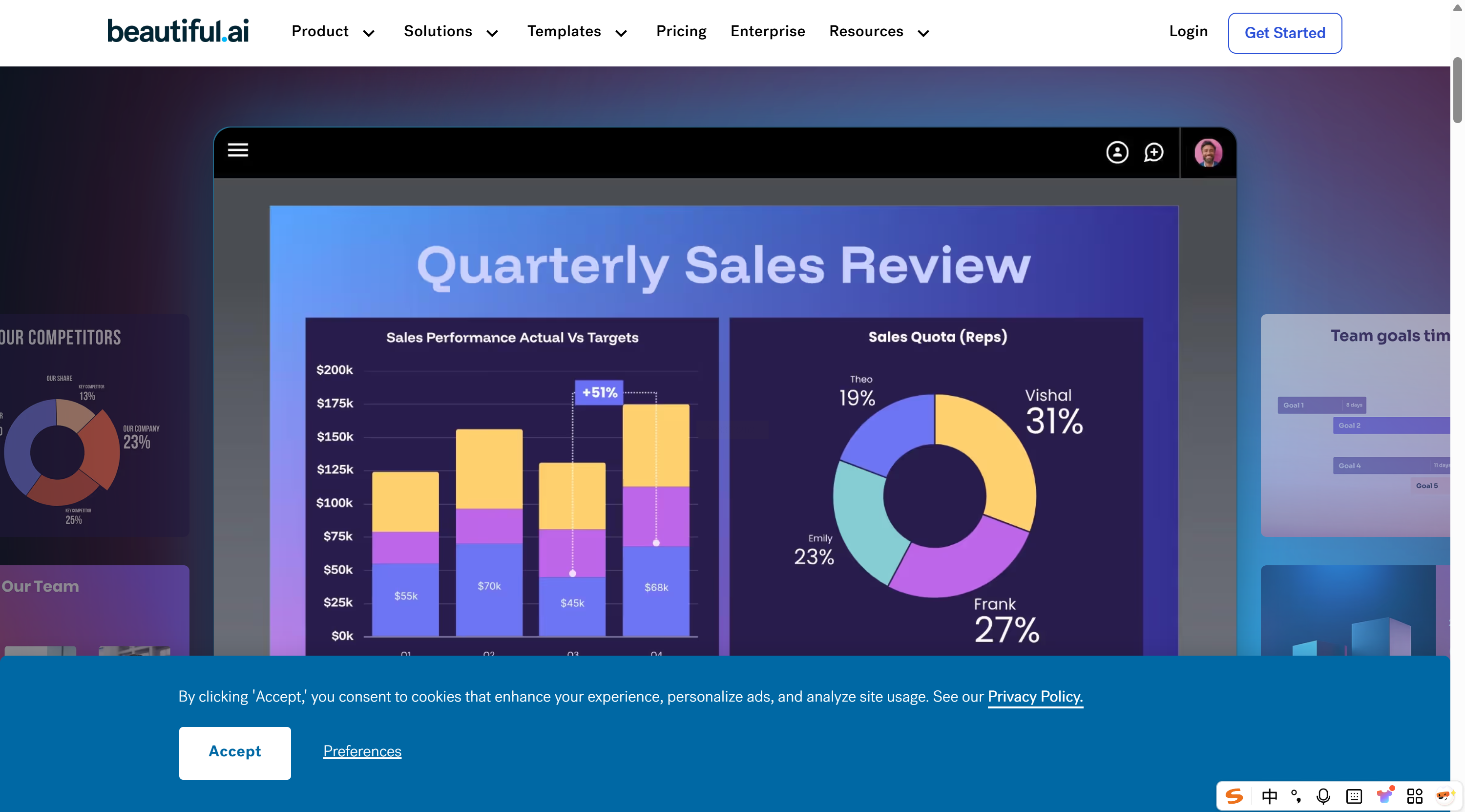 如果您追求设计感与专业性,Beautiful.ai的“智能模板”功能值得关注。它的自动化设计引擎能在用户编辑内容时,实时、智能地调整页面布局、字体与配色,确保整套幻灯片的视觉风格高度统一。
