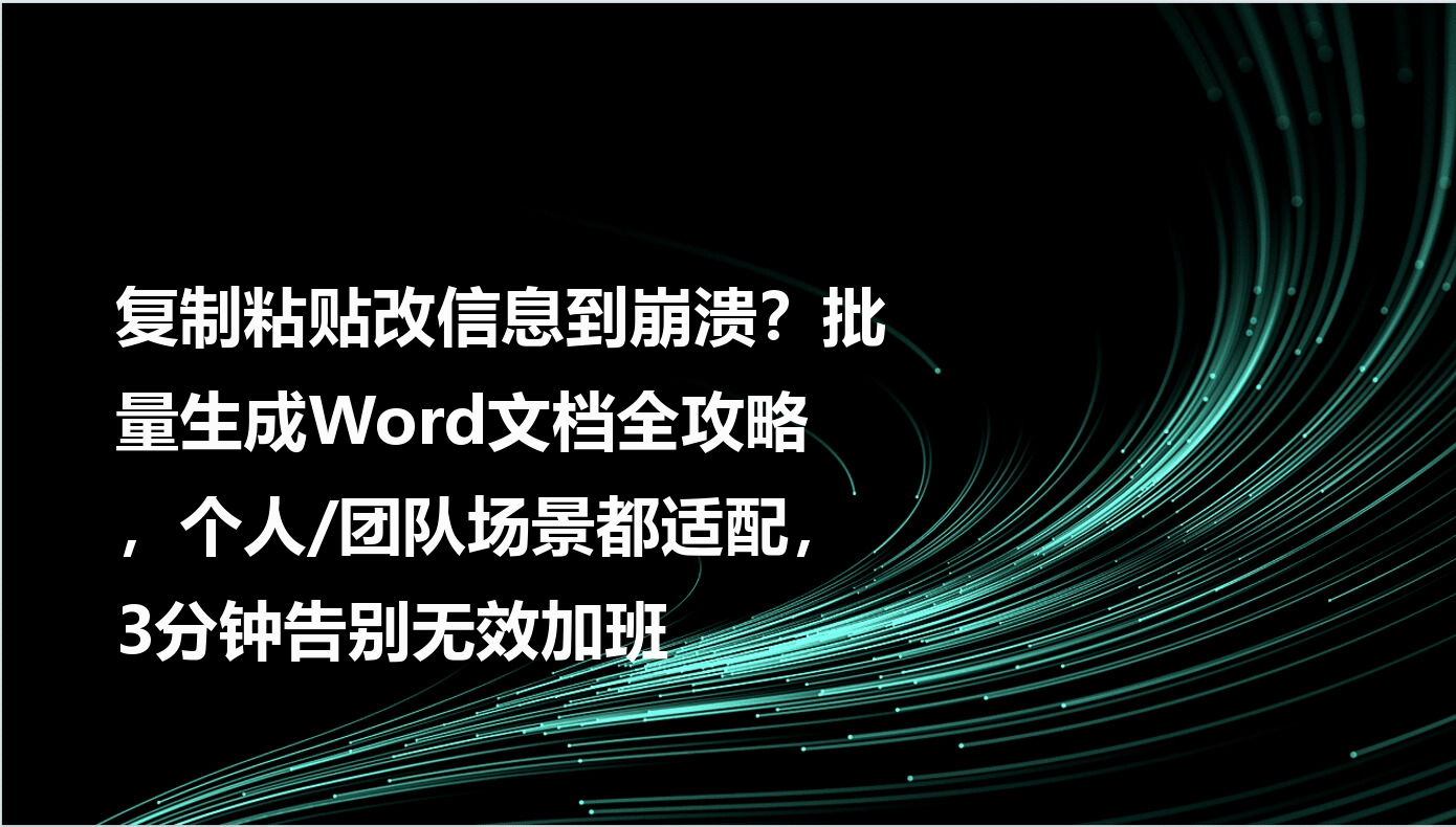 “复制粘贴50次只为改个姓名编号”“合同因手动输入错误被退回”——这些场景是不是让你每天多花几小时在机械重复上?批量生成带固定内容的Word文档,本质是解决“数据→文档”的自动化转换问题。但不同需求场景(个人临时使用/团队协作/复杂格式处理)适合的工具差异很大。本文从数据处理基础到专业软件全覆盖,拆解零门槛方法,帮你3分钟掌握最适合自己的办公技巧。