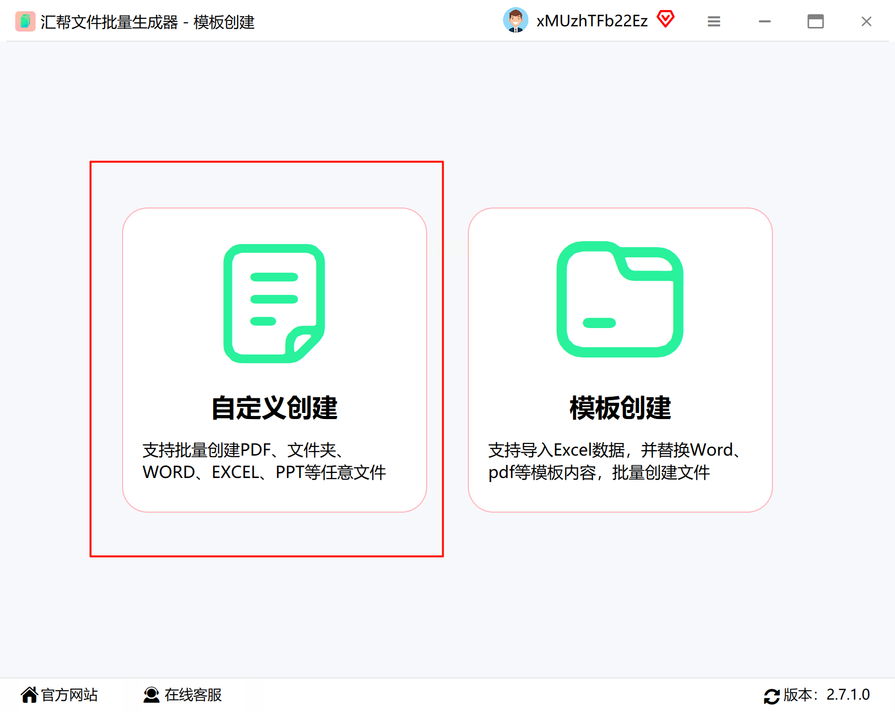 2. 选择自定义创建:打开软件后,点击界面左侧“批量创建”模块,选择“文件夹”类型(支持PDF/Word等其他格式)。