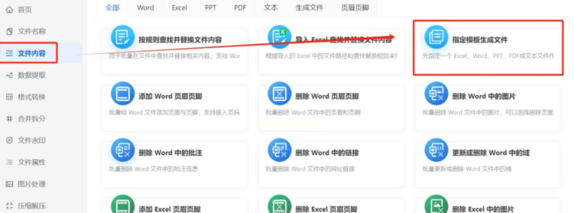 在浏览器中搜索并打开一个可靠的在线工具箱(具体名称这里不提及,避免广告嫌疑)。找到“文件内容”或类似选项,点击“指定模板生成文件”
