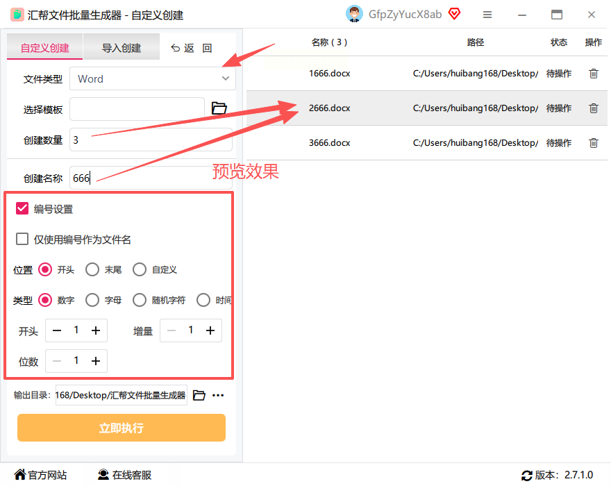 核心优势:操作步骤少,就几步就能完成;支持多种文件类型,不只是Word;可以自定义名称,还能预览效果,不容易出错,高效搞定批量创建word文件并命名。