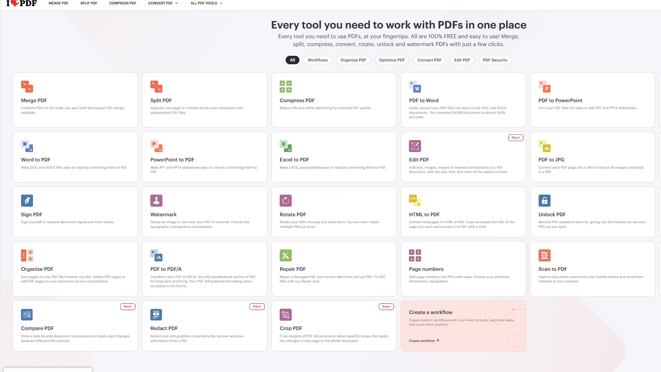 1. 打开iLovePDF官网,选择“Word Tools”分类中的“Batch Create”;