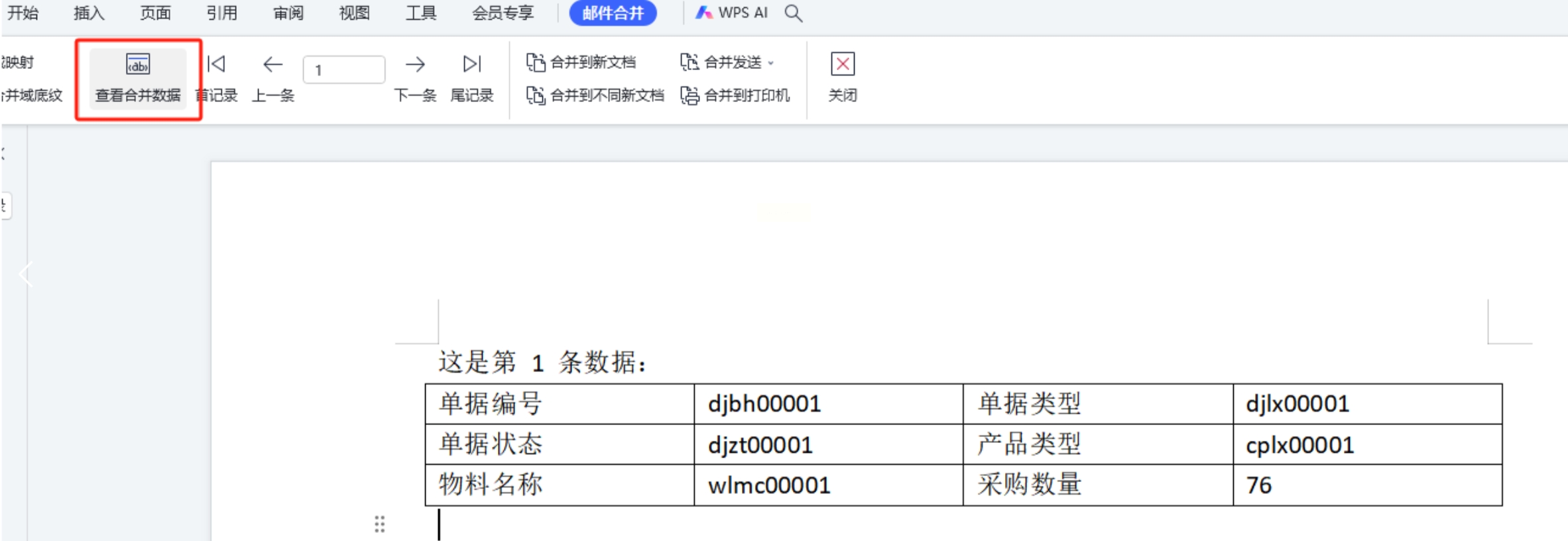 * 神奇的事情发生了!你Word表格里的那些`«产品名»`占位符,瞬间变成了Excel里第一条数据的真实内容。