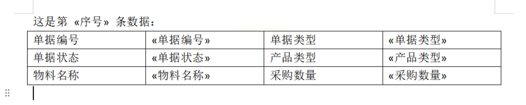 * 设计Word表格模板:打开Word,根据你的报告需求,画好一个空表格。表头设计成你需要的项目,比如“序号”、“产品名称”、“规格”、“备注”等。这个表格将作为每条数据的展示框架。